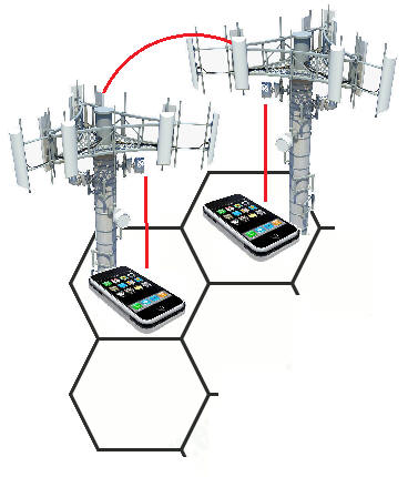 7) Als je tijdens het telefoongesprek buiten het bereik van het basisstation komt, 'merkt' dat station dat het signaal minder wordt. Een volgende cel -die steeds aan het luisteren is of er signalen in de buurt zijn- ziet jouw signaal dichterbij komen en zal de signalen overnemen. De twee basisstations houden samen in de gaten wanneer de één het signaal moet overnemen van de ander en wanneer het basisstation waar je als eerste gebruik van maakt, jouw kanalen weer kan gebruiken voor een ander gesprek.