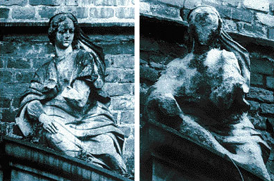 (kalkstenen beelden worden heel erg aangetast door zure regen)
