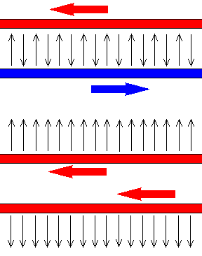 Ampère heeft vastgesteld dat als door 2 evenwijdige geleidende metalen draden een stroom gestuurd wordt en als die stromen dezelfde richting hebben, de 2 stroomdraden elkaar afstoten. Gaan de stromen in verschillende richtingen dan trekken de draden elkaar aan (zie tekening).